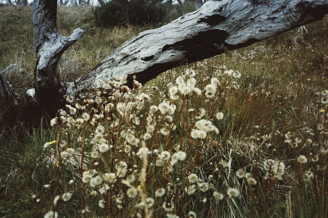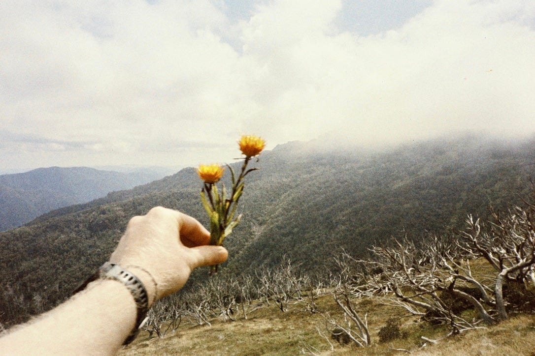 For days we are alone in the hills. I wake up and run, leaping over a black snake, running through swarms of bugs before making it back in time to strip off all my clothes, my naked body plunging into the icy river. My heart stopping as I submerge. We climb to the plateau again, reaching above the tree line, and lie in fields of wildflowers. You’re naked and tanning, while I read in the sun.